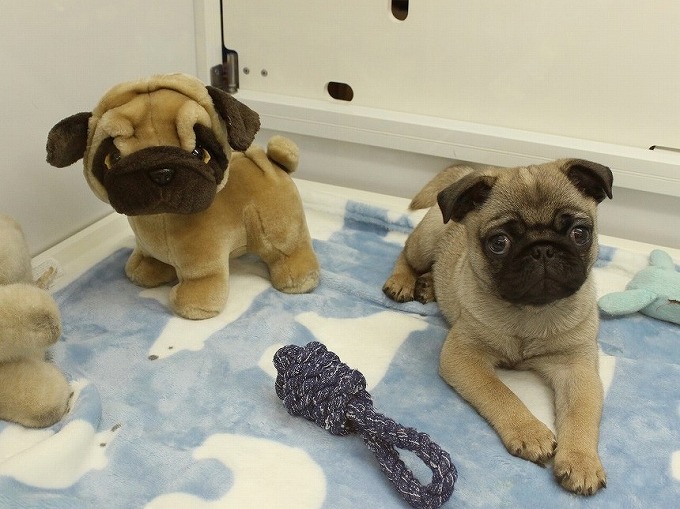 どっちが本物かわからないパグたん。
