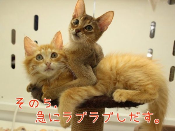 威嚇してた次の日から急にくっついて毛づくろいしだしたり。