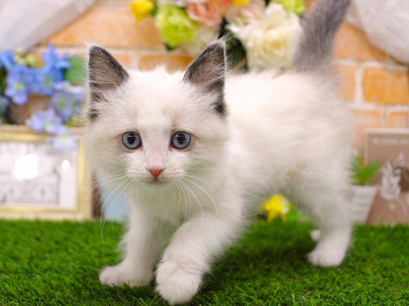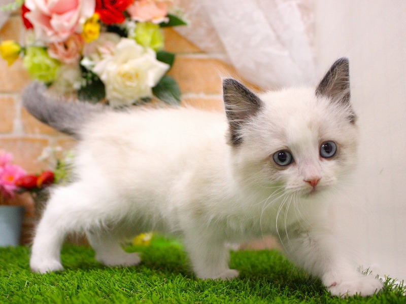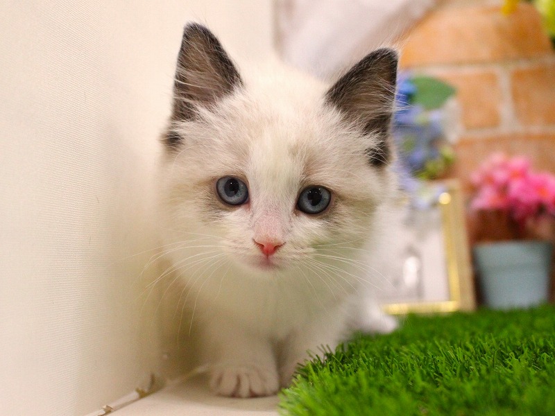 お部屋の前に来る人みんなに声を掛けてしまうほどの甘えたラグドールちゃんに