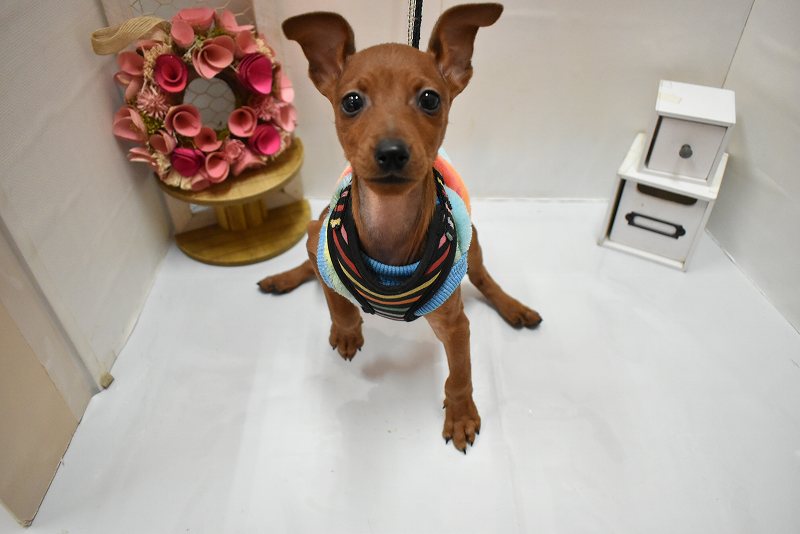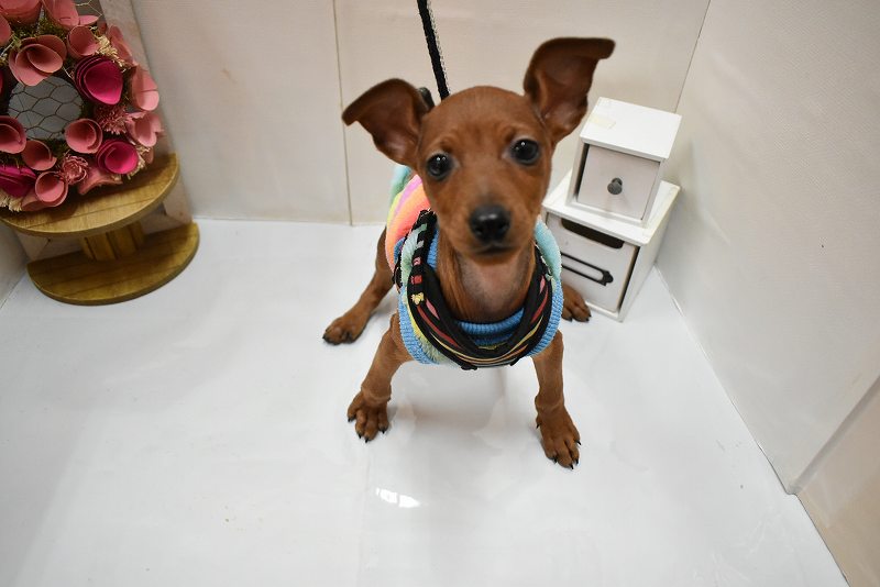 とっても小さめの女の子が魚住店に仲間入りしました!小さい体に小さい手足、心配になってしまうくらいのサイズ感ですが、それを感じさせないくらい一生懸命走って近寄ってくるほど、遊んでもらうことが大好き!!人の気配がすると、とりあえず走ってきては、小さな尻尾を振りながら“あそんで~!!”と猛アピールです。抱っこするとその小ささに驚かれること間違いなしです。ぜひ会いに来てあげてください!