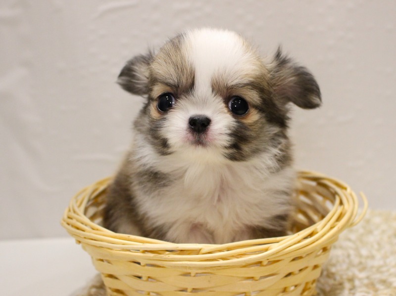 ロングコートチワワは、通称「ロンチー」とも呼ばれ、子犬の頃は手のひらに乗りそうなほど小さい体に、ふわふわの毛とウルウルとした大きな瞳が魅力の超小型犬です。チワワはスムースコートとロングコートの2種類がいますが、日本で圧倒的人気を誇るのがロングコートチワワです。見た目のかわいさもそうですが、ふわふわの毛の触り心地もたまりません。