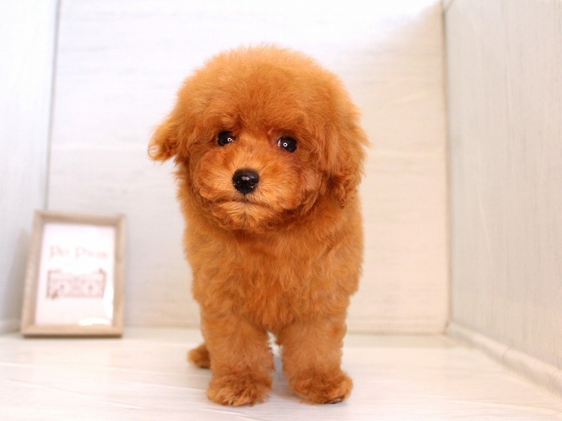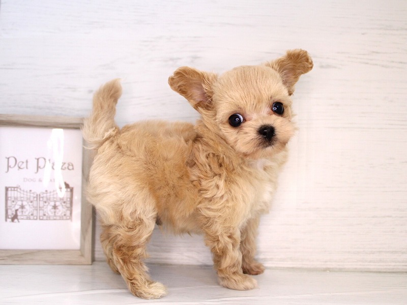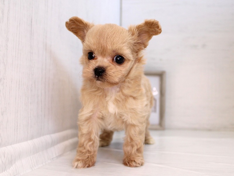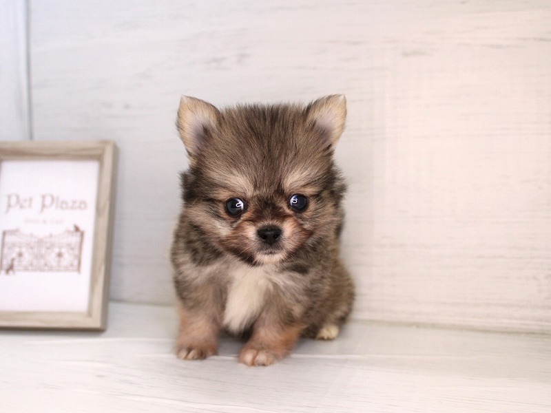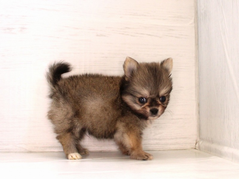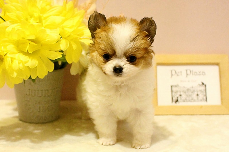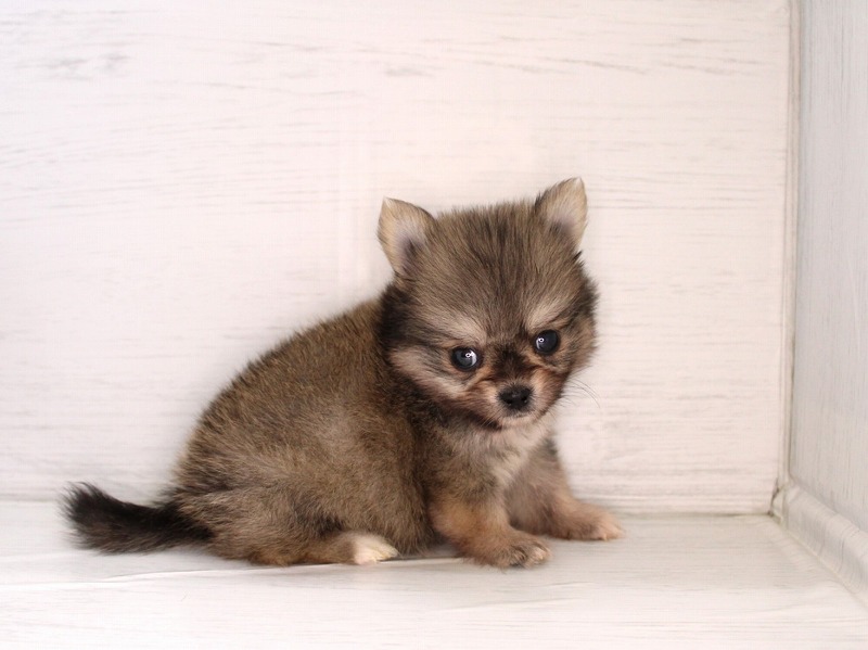 手のひらサイズのおチビさんが仲間入りしました。胴も手足も短めのコンパクトサイズ。手触りの良いフワフワな毛に、まん丸なお顔。つぶらな瞳がチャームポイントです。おチビさんですが、元気いっぱい!!お部屋の扉を開けると、すぐに走ってきて愛想を振りまきます!!小さな尻尾を振りながら、じ~っと見つめられた抱きしめるしかありません!!激カワな甘えん坊君にゼヒ会いに来てあげてください。